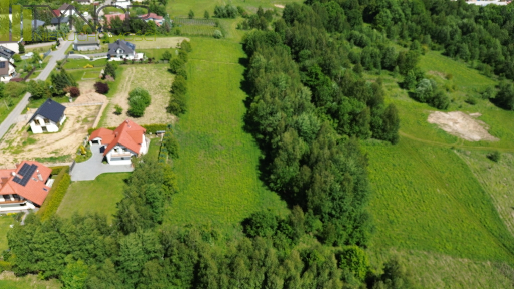 Nieruchomość znajduje się na południowym, lekko nachylonym stoku, dzięki czemu jest doskonale nasłoneczniona z pięknym widokiem na okolicę. Działka ma kształt litery L, o wymiarach ok. 166 m x 58 m, przy czym w węższej części szerokość wynosi od 32 do 39 m. Posiada bezpośredni dostęp do drogi gminnej. Media w odległości 80 metrów prąd, gaz, woda i kanalizacja. W bezpośrednim sąsiedztwie znajduje się nowa zabudowa jednorodzinna, co zapewnia spokojne i estetyczne otoczenie. Teren objęty jest miejscowym planem zagospodarowania przestrzennego, działka oznaczona symbolem MU - tereny zabudowy mieszkaniowo-usługowej. Wyznaczniki planu minimalna powierzchnia nowo wydzielonych działek 600 m2,minimalna szerokość frontu działki18 m,przeznaczenie podstawowe zabudowa mieszkaniowa jednorodzinna (wolnostojąca lub bliźniacza),dopuszczona zabudowa usługowa - wyłącznie usługi nieuciążliwe,możliwość wydzielenia w budynku mieszkalnym lokalu usługowego.Parametry zabudowy maksymalny wskaźnik intensywności zabudowy - 1,0,minimalny wskaźnik intensywności zabudowy - 0,01,minimalny udział powierzchni biologicznie czynnej - 30%,maksymalny wskaźnik powierzchni zabudowy - 50%,maksymalna wysokość zabudowy - do 12 m,dachy główne połacie symetryczne, dwu- lub wielospadowe, o nachyleniu 20-45,dopuszczone lukarny, okna połaciowe, doświetlenia,możliwość wykonania dachów płaskich (0-12) oraz zielonych dachów z powierzchnią biologicznie czynną. Atuty nieruchomości w całości teren budowlany,doskonałe nasłonecznienie i widokowe położenie,pełne uzbrojenie terenu w sąsiedztwie,dogodny dojazd drogą gminną,spokojna okolica z nową zabudową jednorodzinną.