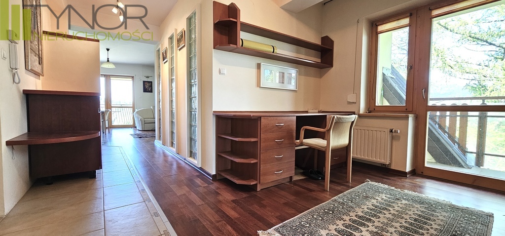 Lokalizacja Nieruchomość zlokalizowana przy ulicy Andrzeja Struga, przecznica od ulicy Małe Żywczańskie. Odległość do centrum Zakopanego wynosi około 1,5 km, 15 minut pieszo. Jednocześnie budynek jest usytuowany na uboczu dzięki czemu mieszkańcy cieszą się niesamowitą ciszą i spokojem. Położony jest przy szlakach do Doliny Białego czy Doliny Strążyskiej, u podnóża Tatrzańskiego Parku Narodowego. Budynek Apartamentowiec został wybudowany w 2005 roku w klimacie zakopiańskim, technologią tradycyjną, utrzymany w bardzo dobrym stanie, zadbany, czysty. Przed budynkiem pusta przestrzeń z zieloną polaną, a za nią piękna szeroka panorama na majestatyczny Giewont oraz południowe zbocze Gubałówki, Butorowy Wierch i Kościelisko. Blok został dodatkowo ocieplony styropianem, co powoduje niskie koszty ogrzewania. Mieszkanie Usytuowane jest na II piętrze. Powierzchnia mieszkania wynosi 56,10 m2 plus dwa balkony. Składa się z salonu z aneksem kuchennym z wyjściem na balkon o ekspozycji na południowy-zachód, sypialni (10 m2), otwartego gabinetu z wyjściem na drugi balkon, łazienki i przedpokoju. Mieszkanie jest w pełni urządzone i wyposażone. W kuchni meble na wymiar oraz sprzęt AGD (lodówka, kuchenka elektryczna, mikrofala, zlew). Większość mebli może pozostać w cenie mieszkania. W łazience kabina prysznicowa, umywalka, WC, szafki. W przedpokoju wyjątkowo pojemne szafy wykonane na wymiar. W łatwy sposób można przerobić apartament na 3 pokojowy (salon + 2 sypialnie). We wszystkich oknach zamontowane są rolety zewnętrzne, co daje dobrą izolację termiczną latem oraz zimą dzięki czemu są niskie rachunki za ogrzewanie. Ogrzewanie i ciepła woda z piecyka elektrycznego nowej generacji. Ogrzewanie można włączać za pomocą Wi-Fi przed przyjazdem do apartamentu. Czynsz administracyjny za mieszkanie, komórkę lokatorską oraz garaż wynosi 680 zł. W salonie kominek. Do mieszkania wskazany jest zakup garażu, który znajduje się na parterze budynku. Jest on zamykany, jego powierzchnia wynosi 20,4 m2 zatem zmieszczą się w nim oprócz samochodu, rowery, narty itp. Za garażem jest komórka lokatorska o pow. ok 2 m2. Cena garażu i komórki wynosi 60.000 zł. Jest to mieszkanie idealne do mieszkania jak i wynajmu długo i krótkoterminowego. Nieruchomość dostępna od zaraz.