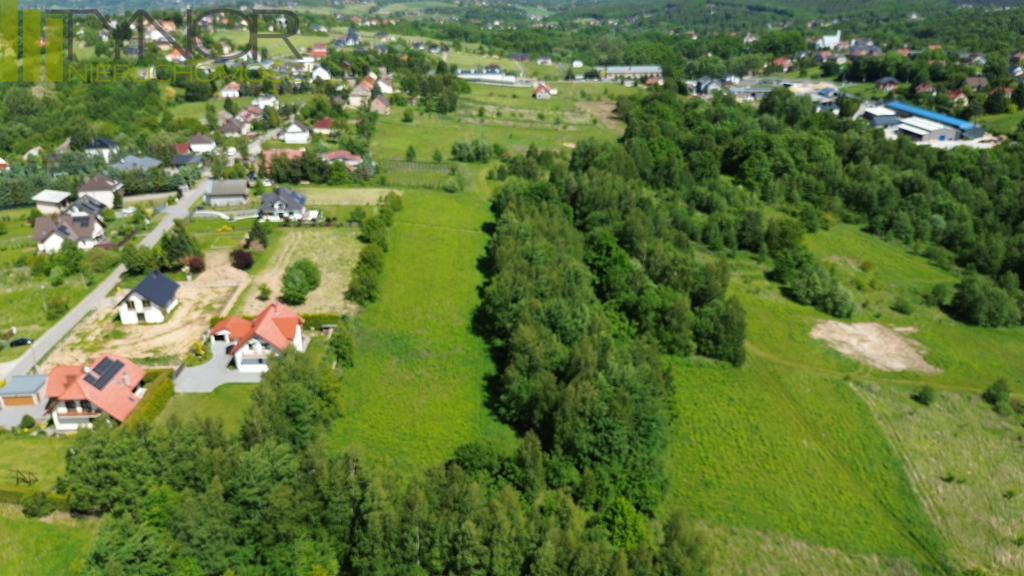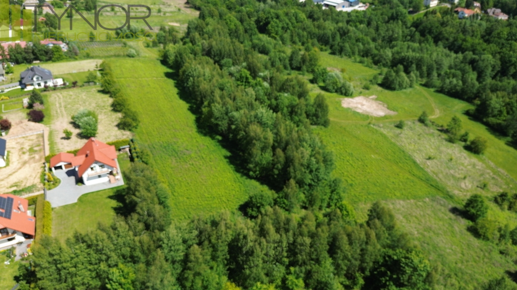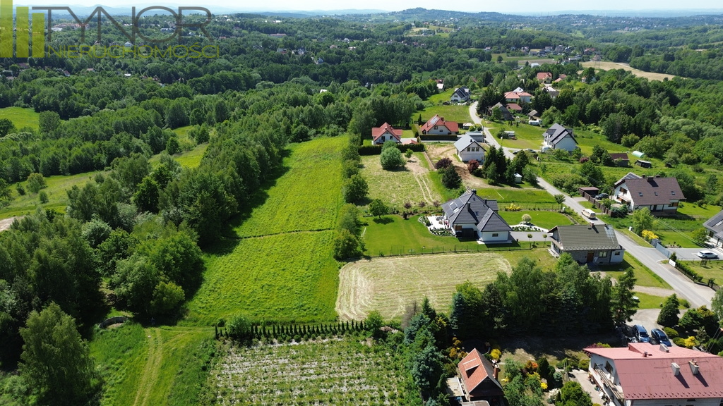 Nieruchomość znajduje się na południowym, lekko nachylonym stoku, dzięki czemu jest doskonale nasłoneczniona z pięknym widokiem na okolicę. Działka ma kształt litery L, o wymiarach ok. 166 m x 58 m, przy czym w węższej części szerokość wynosi od 32 do 39 m. Posiada bezpośredni dostęp do drogi gminnej. Media w odległości 80 metrów prąd, gaz, woda i kanalizacja. W bezpośrednim sąsiedztwie znajduje się nowa zabudowa jednorodzinna, co zapewnia spokojne i estetyczne otoczenie. Teren objęty jest miejscowym planem zagospodarowania przestrzennego, działka oznaczona symbolem MU - tereny zabudowy mieszkaniowo-usługowej. Wyznaczniki planu minimalna powierzchnia nowo wydzielonych działek 600 m2,minimalna szerokość frontu działki18 m,przeznaczenie podstawowe zabudowa mieszkaniowa jednorodzinna (wolnostojąca lub bliźniacza),dopuszczona zabudowa usługowa - wyłącznie usługi nieuciążliwe,możliwość wydzielenia w budynku mieszkalnym lokalu usługowego.Parametry zabudowy maksymalny wskaźnik intensywności zabudowy - 1,0,minimalny wskaźnik intensywności zabudowy - 0,01,minimalny udział powierzchni biologicznie czynnej - 30%,maksymalny wskaźnik powierzchni zabudowy - 50%,maksymalna wysokość zabudowy - do 12 m,dachy główne połacie symetryczne, dwu- lub wielospadowe, o nachyleniu 20-45,dopuszczone lukarny, okna połaciowe, doświetlenia,możliwość wykonania dachów płaskich (0-12) oraz zielonych dachów z powierzchnią biologicznie czynną. Atuty nieruchomości w całości teren budowlany,doskonałe nasłonecznienie i widokowe położenie,pełne uzbrojenie terenu w sąsiedztwie,dogodny dojazd drogą gminną,spokojna okolica z nową zabudową jednorodzinną.