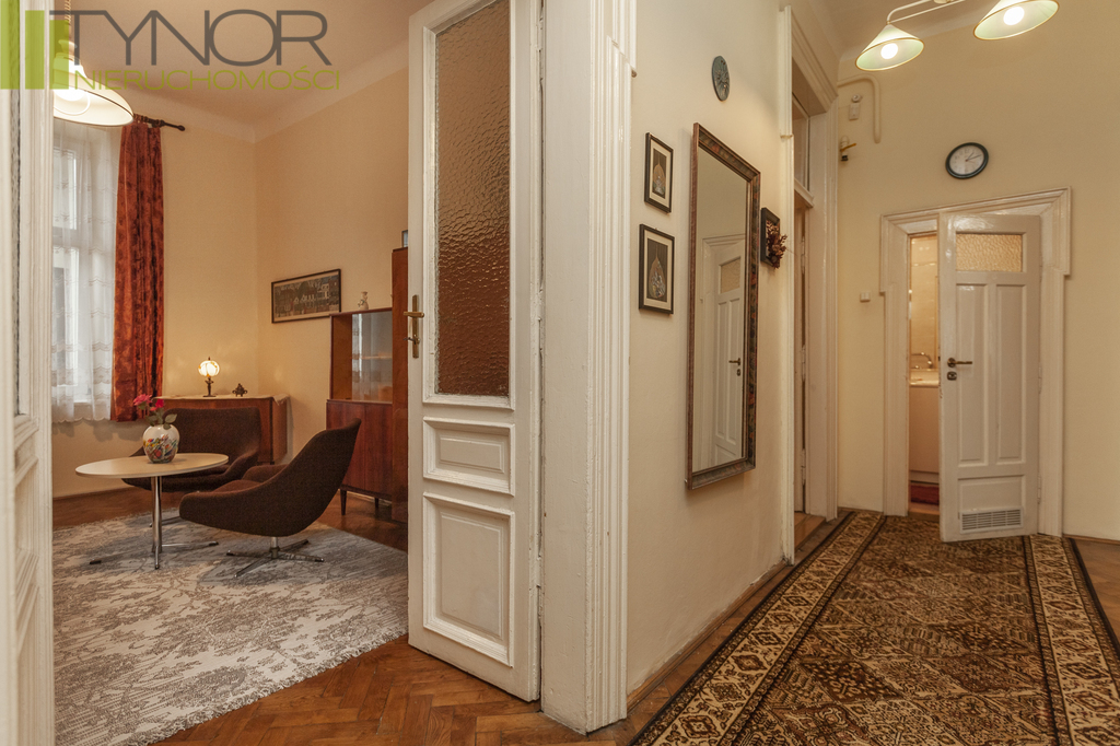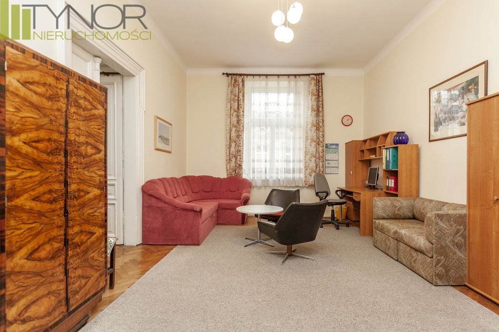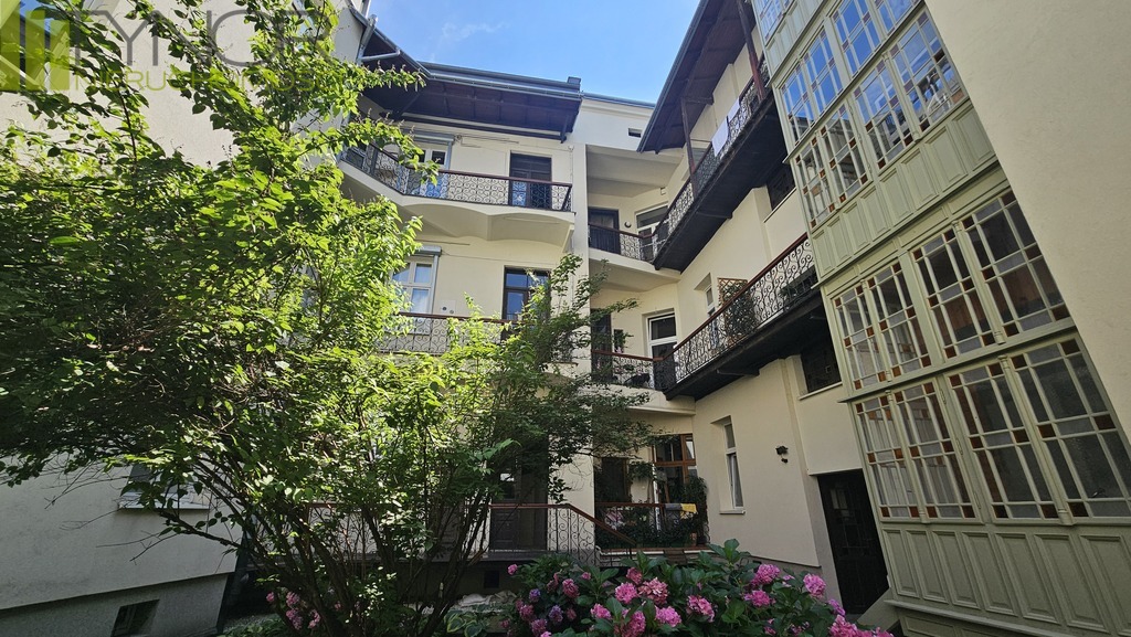 Kamienica w której usytuowane jest mieszkanie pochodzi z przełomu XIX i XX wieku, jest zadbana, odremontowana, bardzo kameralna. Elewacja całkowicie odnowiona, klatka zabytkowa z ciekawymi detalami. Tylko dwa mieszkania na piętrze. Lokal znajduje się na II i ostatnim piętrze w głównej klatce schodowej. Powierzchnia mieszkania wynosi 103,20 m2, składa się z 3 niezależnych pokoi o powierzchniach 25, 24 i 18 m2, osobnej kuchni o pow. 17,4 m2, łazienki, przedpokoju, schowka, balkonu z którego jest wejście do pomieszczenia gospodarczego oraz przejście na boczną klatkę. Do lokalu przynależy duża piwnica o powierzchni 21 m2, z oknem. Lokal ma solidne, nowe okna, które są wysokie, dzięki czemu wnętrza są bardzo doświetlone. Na podłogach oryginalny parkiet, w pokojach piece kaflowe z wkładami elektrycznymi. Ogrzewanie elektryczne, z możliwością przerobienia na gazowe, w lokalu jest już gaz, podpięty do kuchni i pieca na ciepłą wodę. Wysokość czynszu administracyjnego wynosi 850 zł. Ulica Tarłowska położona w najbardziej prestiżowej części dzielnicy Stare Miasto, tuż przy Zamku Królewskim na Wawelu, łączy w sobie ciszę bocznej uliczki z bliskością najważniejszych punktów Krakowa - tych historycznych, kulturalnych i codziennych. Znajduje się zaledwie kilka kroków od tętniącego życiem Rynku Głównego, sama ulica jednak jest niesamowicie spokojna i pełna zieleni. Wystarczy przejść 200 metrów, by znaleźć się na Bulwarach Wiślanych, idealnych do spacerów, joggingu czy odpoczynku z widokiem na rzekę i Wawel. W promieniu kilku minut spacerem znajdują się - najlepsze krakowskie restauracje i kawiarnie od eleganckich lokali po kameralne knajpki z duszą - centra kultury i sztuki - filharmonia, teatry, galerie sztuki, muzea - uczelnie wyższe - Uniwersytet Jagielloński, ASP, Akademia Muzyczna - centra konferencyjne, biura, ambasady - prestiżowa okolica idealna także do pracy i spotkań biznesowych Doskonała komunikacja i infrastruktura, okolica jest dobrze skomunikowana przystanki tramwajowe i autobusowe w zasięgu kilku minut. Łatwy dojazd do Dworca Głównego i lotniska. Strefa ograniczonego ruchu (strefa A), co zapewnia spokój i minimalny ruch samochodowy W pobliżu znajdują się także sklepy, piekarnie, apteki, szkoły i przychodnie. To idealne miejsce dla osób ceniących styl, spokój i wysoką jakość życia inwestorów poszukujących prestiżowej lokalizacji pod wynajem miłośników historii, sztuki i miejskiego życia w eleganckim wydaniu.